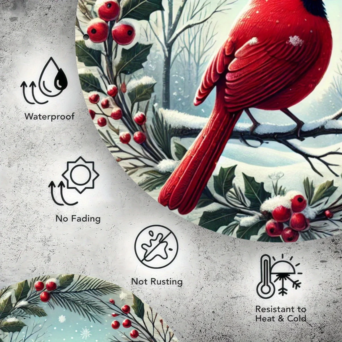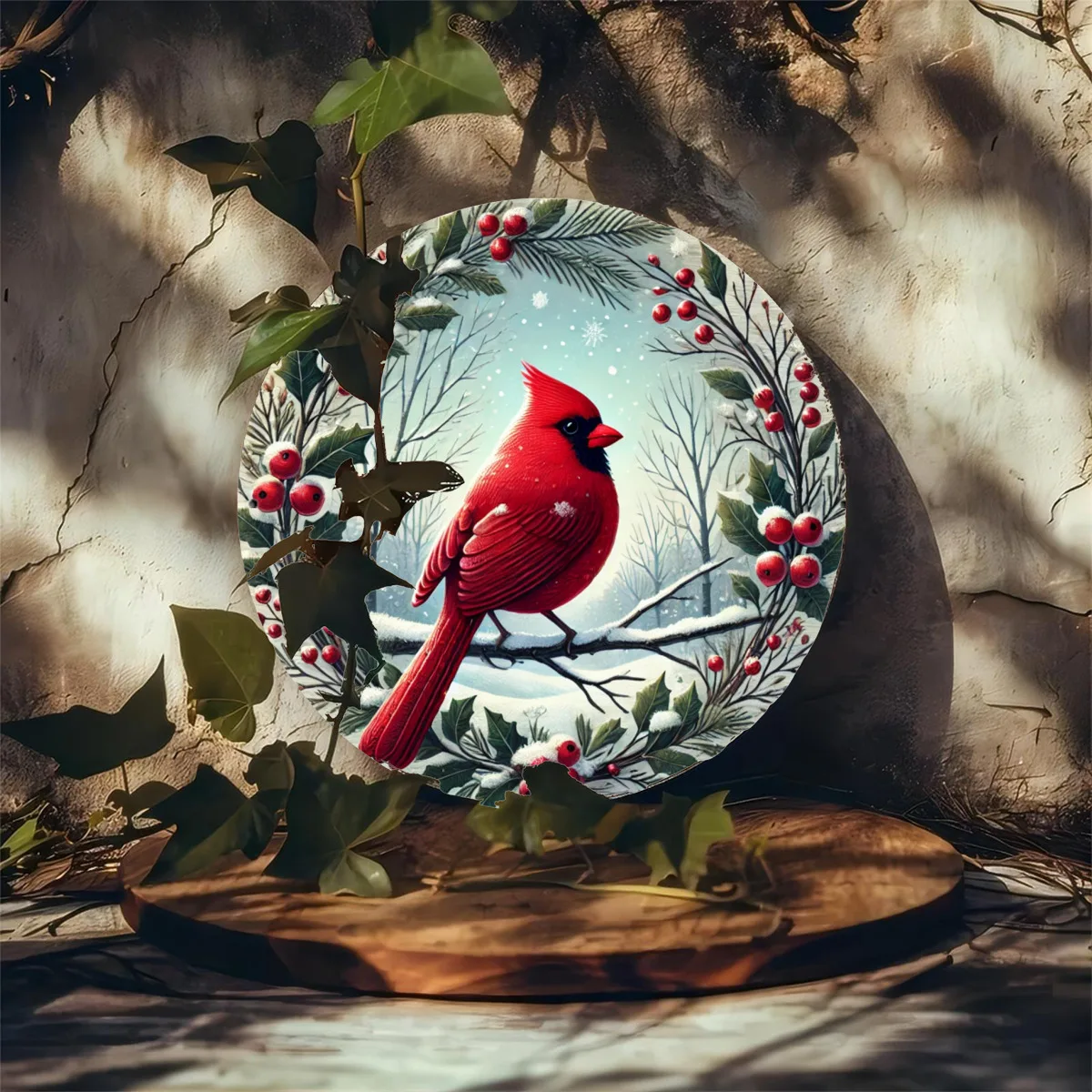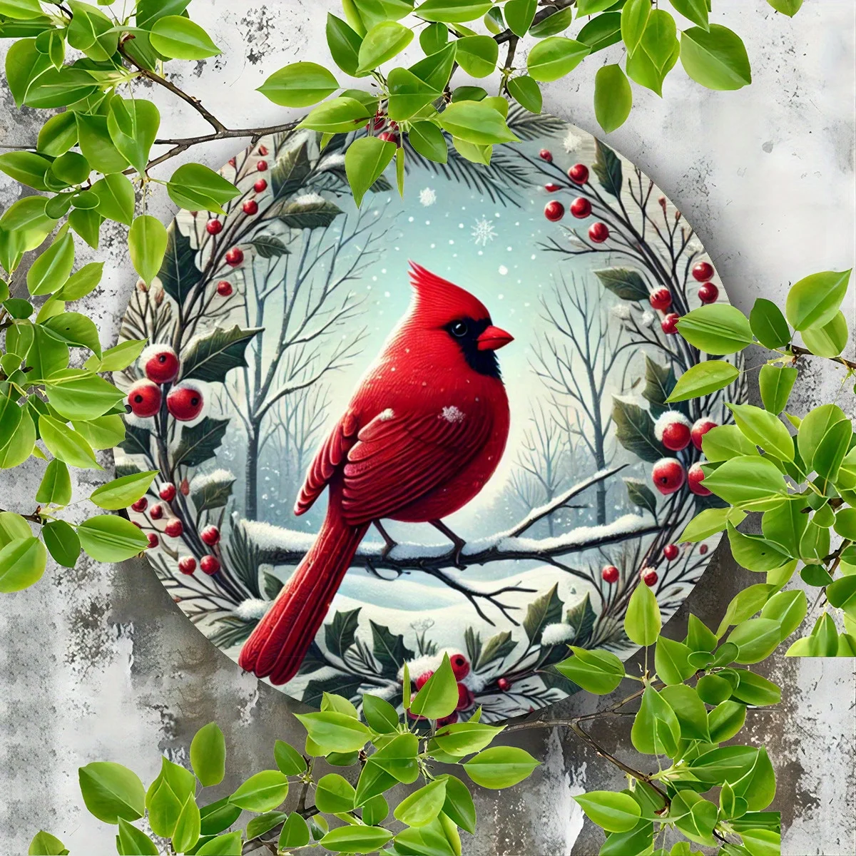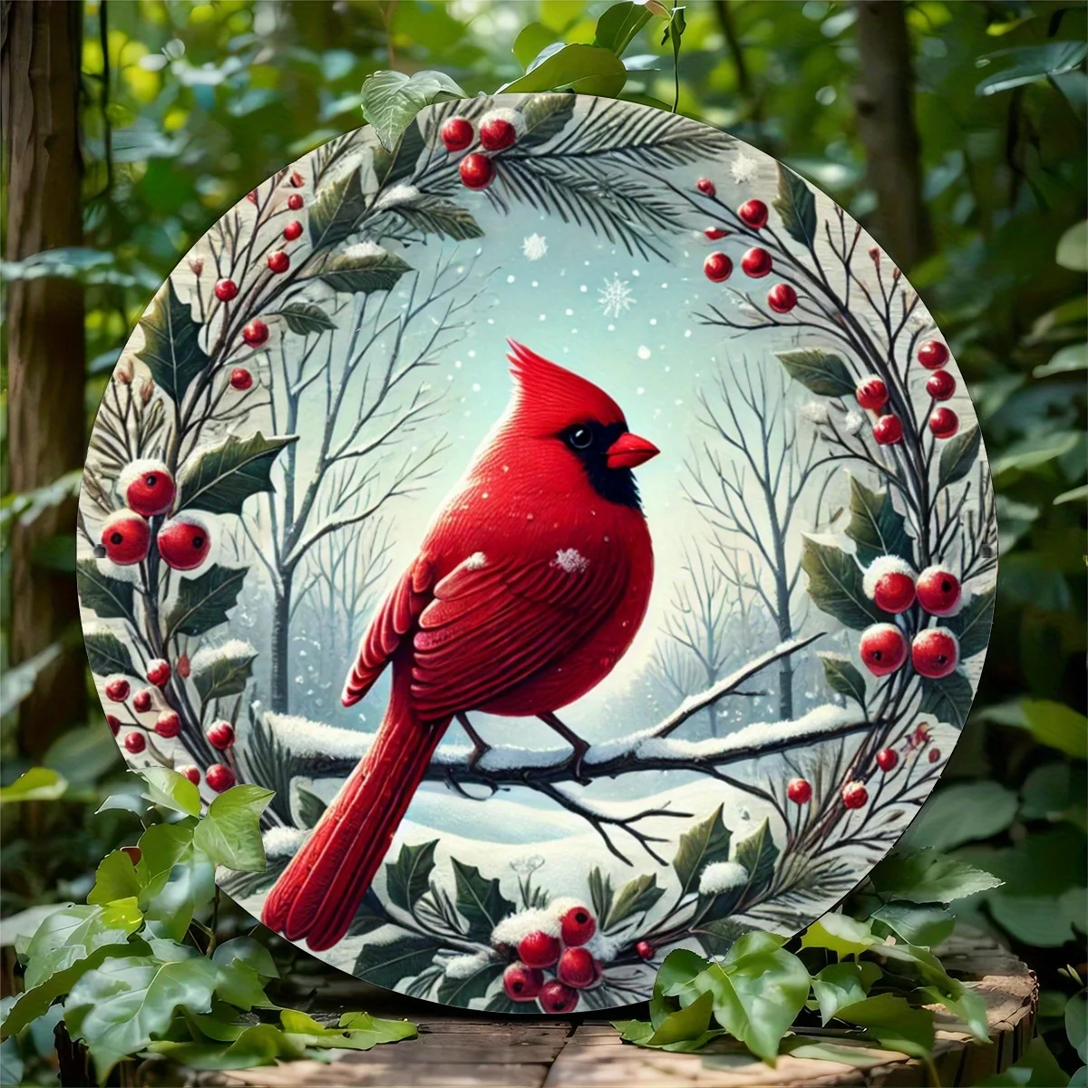 8x8 Inch Red Cardinal Bird Garland Metal Wall Art - ,