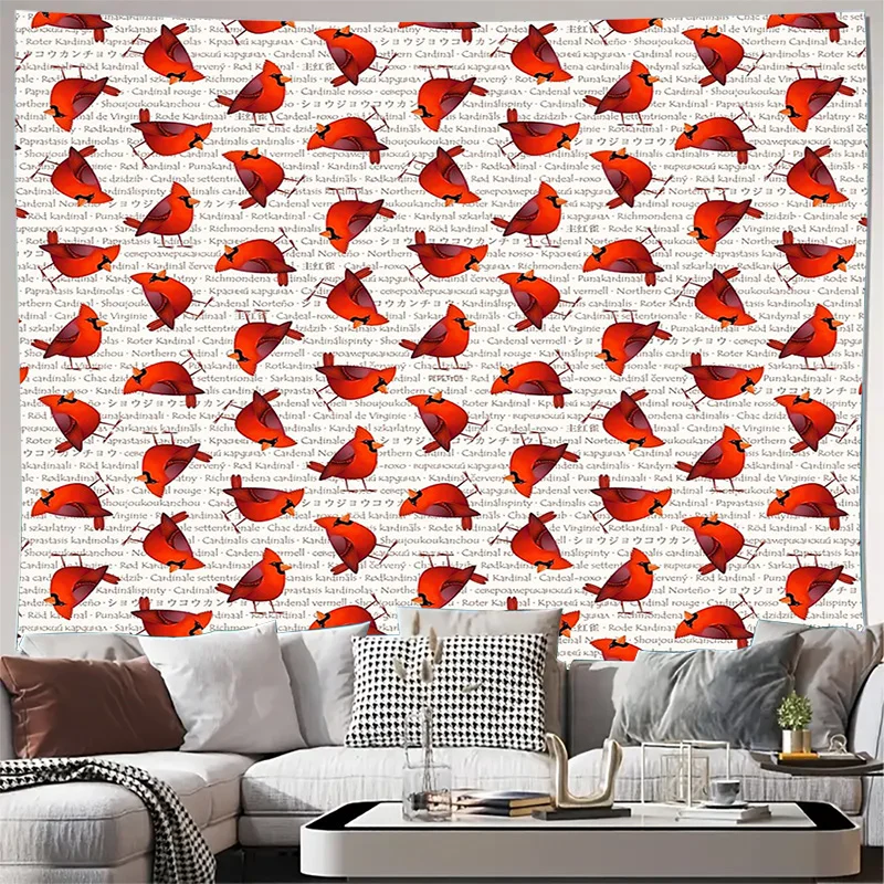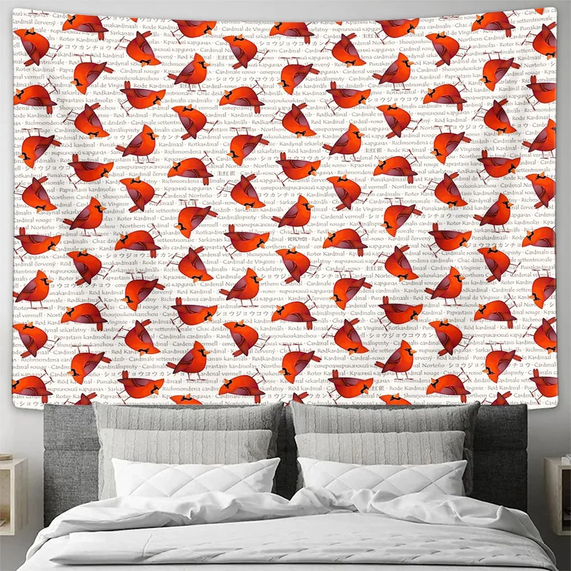 Cardinal Tapestry Forest Animals Deer Fox Birds Wall Hanging Nature Home Decor Aesthetic Room Artistic Tapestry Dorm